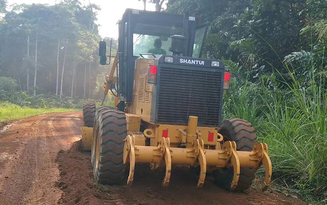 加蓬某林業公司是當地最大的林業公司之一,該公司也同時擁有我公司推土機等設備,其中購買我SG18-3平地機主要用于林業伐木道路施工,進行路面土壤的刮平和修整,我公司該型號平地機在施工中表現為動力充足,工作高效,同時整機在高溫環境下連續運行,表現出了極高的可靠性,為該公司的發展做出了積極的貢獻,公司老板對我公司該款平地機非常認可,給予很高的評價,表示后續有需求會繼續采購該型設備為其伐木事業開疆擴土,保駕護航。