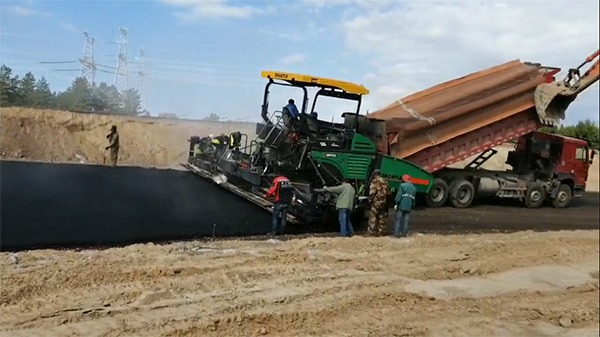 山推SRP09S攤鋪機15度傾斜路面施工,以其良好的平整度、高的預壓實度,向客戶展現了優異的施工質量,獲得了客戶的高度認可。