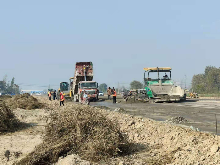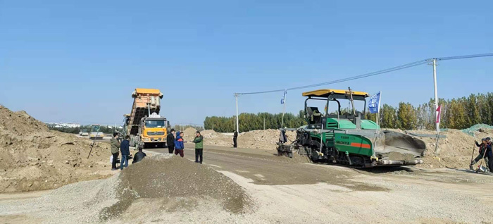 在濰坊市昌樂縣某園區道路的施工現場,山推成套路面施工設備包括壓路機、攤鋪機等正有條不紊的進行水穩層施工。山推設備質量可靠,高效穩定,施工期間未出現任何問題,圓滿完成施工任務,縮短了整個施工周期,贏得了施工方的高度贊譽。