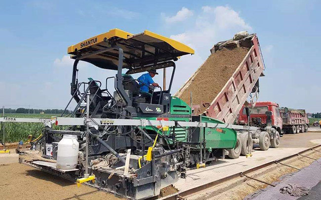 山推攤鋪機在鄭州國際機場項目中進行跑道修筑