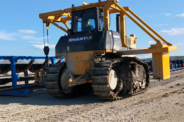 在該露天礦區(qū),兩臺山推移設(shè)機(jī)聯(lián)合作業(yè),依靠大型推土機(jī)底盤強(qiáng)大的地面附著力和牽引力,專業(yè)移設(shè)礦區(qū)大型帶式輸送機(jī)。兩臺設(shè)備聯(lián)合作業(yè),大大提高了輸送帶的鋪設(shè)和遷移效率,得到了客戶的高度認(rèn)可。