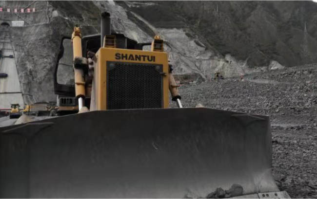 SD32推土機進行西南地區水電站壩體建設,推土機將土、石子等松散物料進行推移堆積,壓路機壓平,澆注混凝土形成壩體。