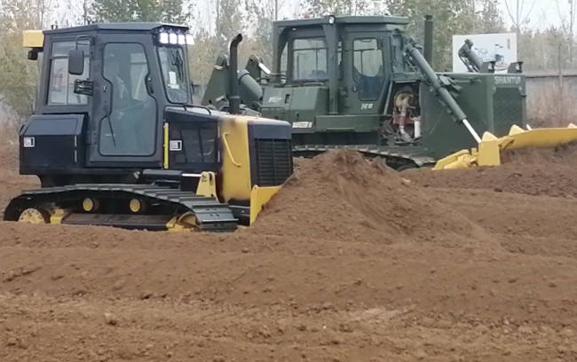 在南部某城市施工工地,客戶新購買的DH10-C2全液壓推土機正在進行泥土推運作業。在惡劣的施工現場,全密封駕駛室及八點減震結構,司機耳邊噪音低,整體隔離率高,駕駛室空間大,視野好,為操作者提供舒適的駕乘環境。電控行走手柄操作省力、舒適;單手柄實現,進退及轉向功能。速度預設模式可設置操作者最佳的作業速度,降低作業勞動強度,設備得到了客戶的好評。山推DH10-C2全液壓推土機采用成熟的雙回路靜壓傳動系統,傳動效率高,使用可靠;適用于公路、鐵路、園林、機場、農田等地面的推運、開挖、回填土石方以及其它精細化施工的作業。