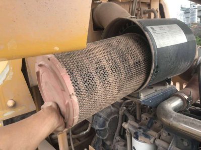 4、檢查清理更換空氣濾清器濾芯,粉塵比較大的工況每天設備停止使用后,必須要進行清理粉塵。外濾芯可以用壓縮空氣進行清理,由里往外進行清理,空氣濾芯在使用六次后必須要進行更換。檢查濾清器密封是否良好,并對殼體內部進行清理。